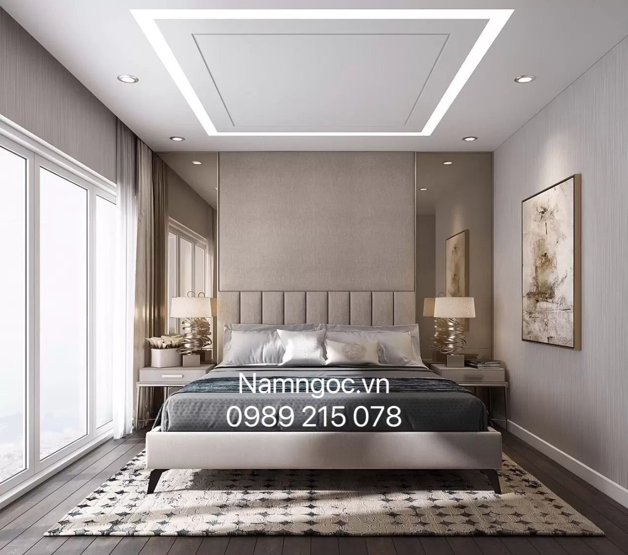 Khi quý khách hàng đã chọn được mẫu trần thạch cao phòng ngủ ưng ý phù hợp áp dụng vào không gian phòng ngủ nhà mình, công đoạn lựa chọn thợ làm trần thạch cao chuyên nghiệp rất quan trọng. Thi công phải đảm bảo đúng yêu cầu kỹ thuật giúp trần thạch cao phòng ngủ hiện đại sau năm tháng sử dụng vẫn giữ được độ bền, đẹp. Nam Ngọc là Công ty có hơn 10 năm kinh nghiệm thiết kế làm trần thạch cao, cam kết sẽ mang lại cho quý khách hàng những sản phẩm tốt nhất và dịch vụ chuyên nghiệp nhất, Hãy Liên Hệ cới chúng tôi qua Hotline: 0989 215 078 để được tư vấn miễn phí và báo giá chính xác nhất về trần thạch cao phòng ngủ